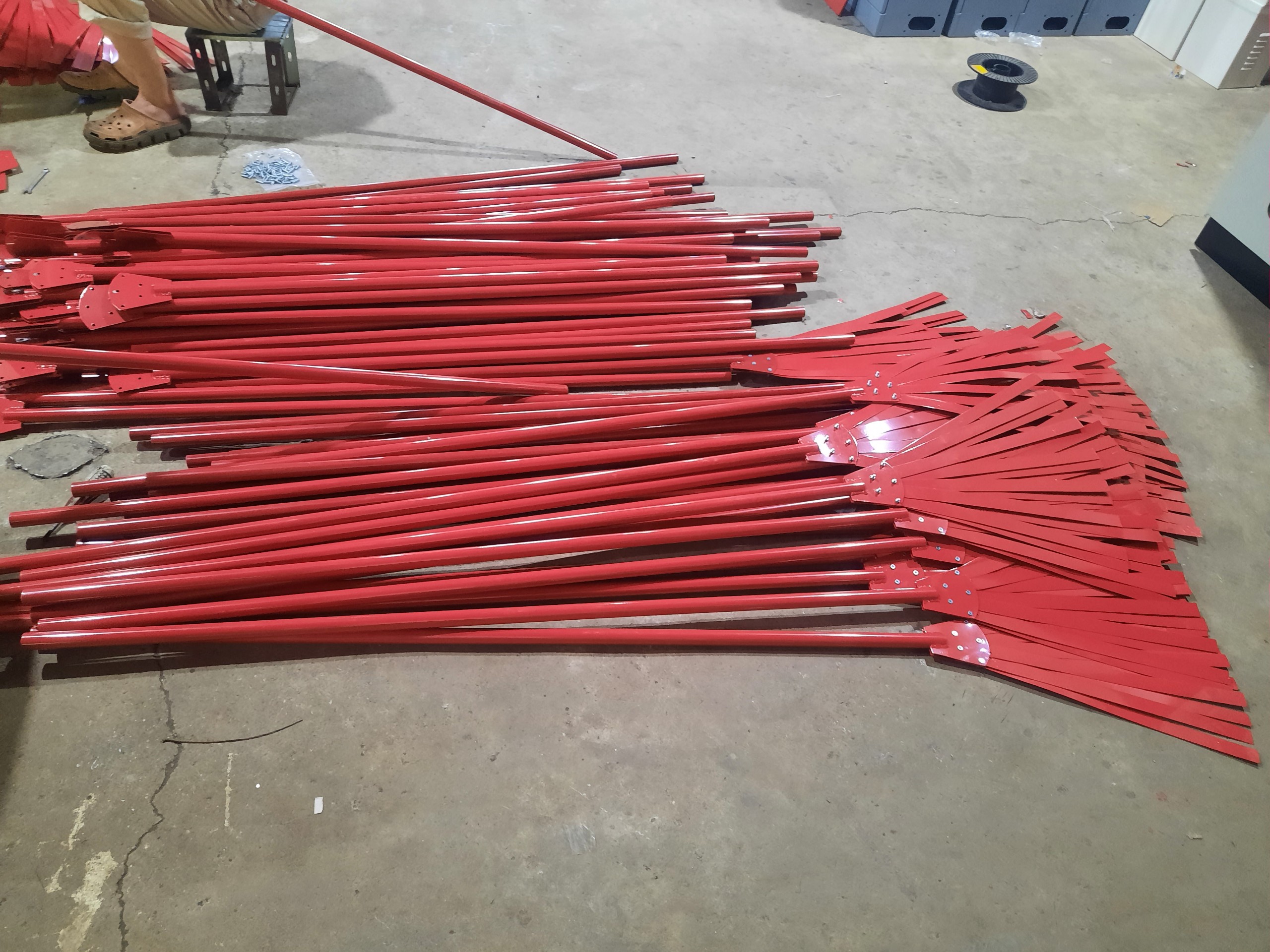 + Chổi dập lửa inox: Lưỡi vỉ và bàn dập lửa được làm bằng inox độ dày từ 0.4-0.6mm, cán chổi vẫn được sử dụng bằng ống thép D25-27mm độ dài là 1.5mm và dược son tĩnh điện màu đỏ.